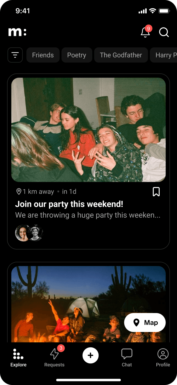 The idea for the app came from observing that nowadays people are building fewer friendships and often struggle to find company to attend events with. MoreThanTwo addresses this problem by helping people connect for friendly gatherings, romantic meetups, or simply spending time together.